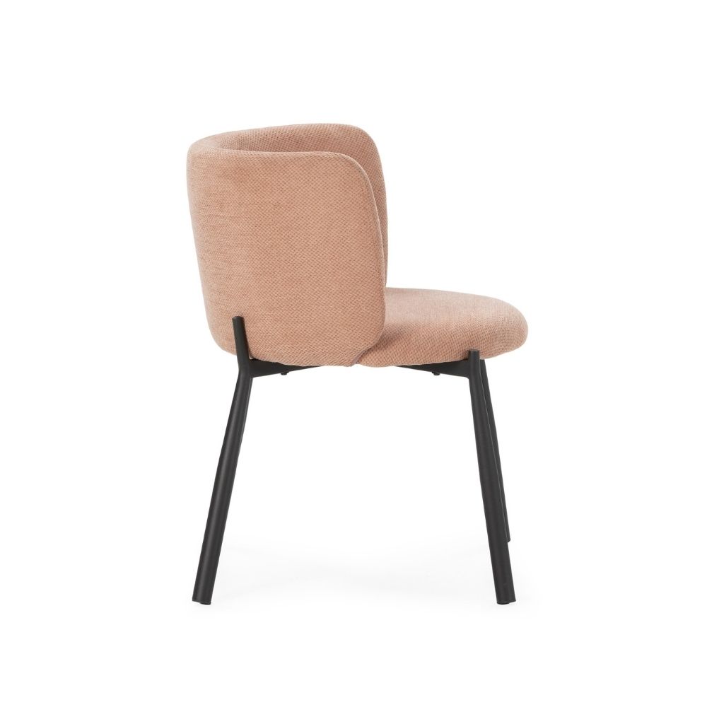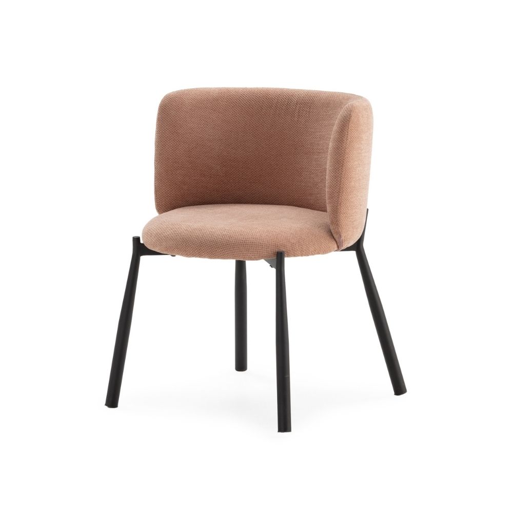 La combinación del coral con el negro da como resultado una silla sofisticada que destaca por su equilibrio entre estética y confort.