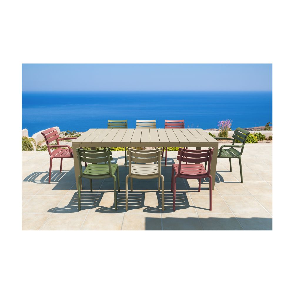 La mesa extensible Atlantic va de 210 a 280 cm. Está fabricada en polipropileno con estructura de aluminio. Fácilmente expandible, ofrece dos opciones de tamaño. Su mecanismo de extensión inteligente permite ajustar fácilmente la mesa a su tamaño preferido. Para uso en interiores y exteriores con protección UV.