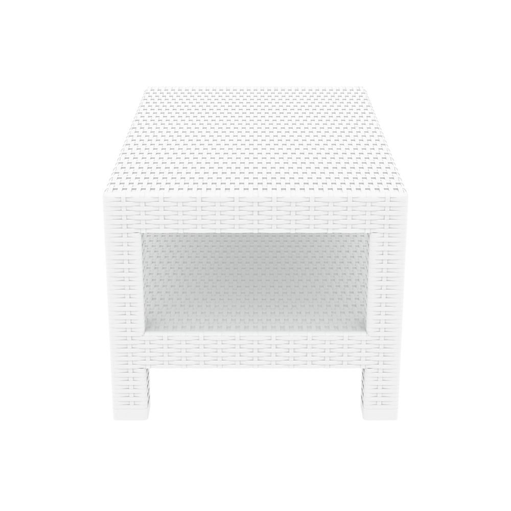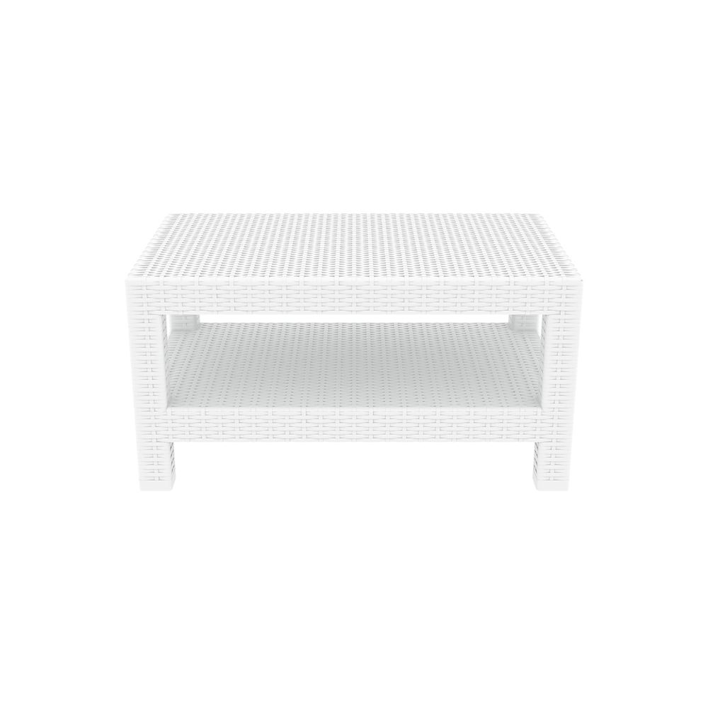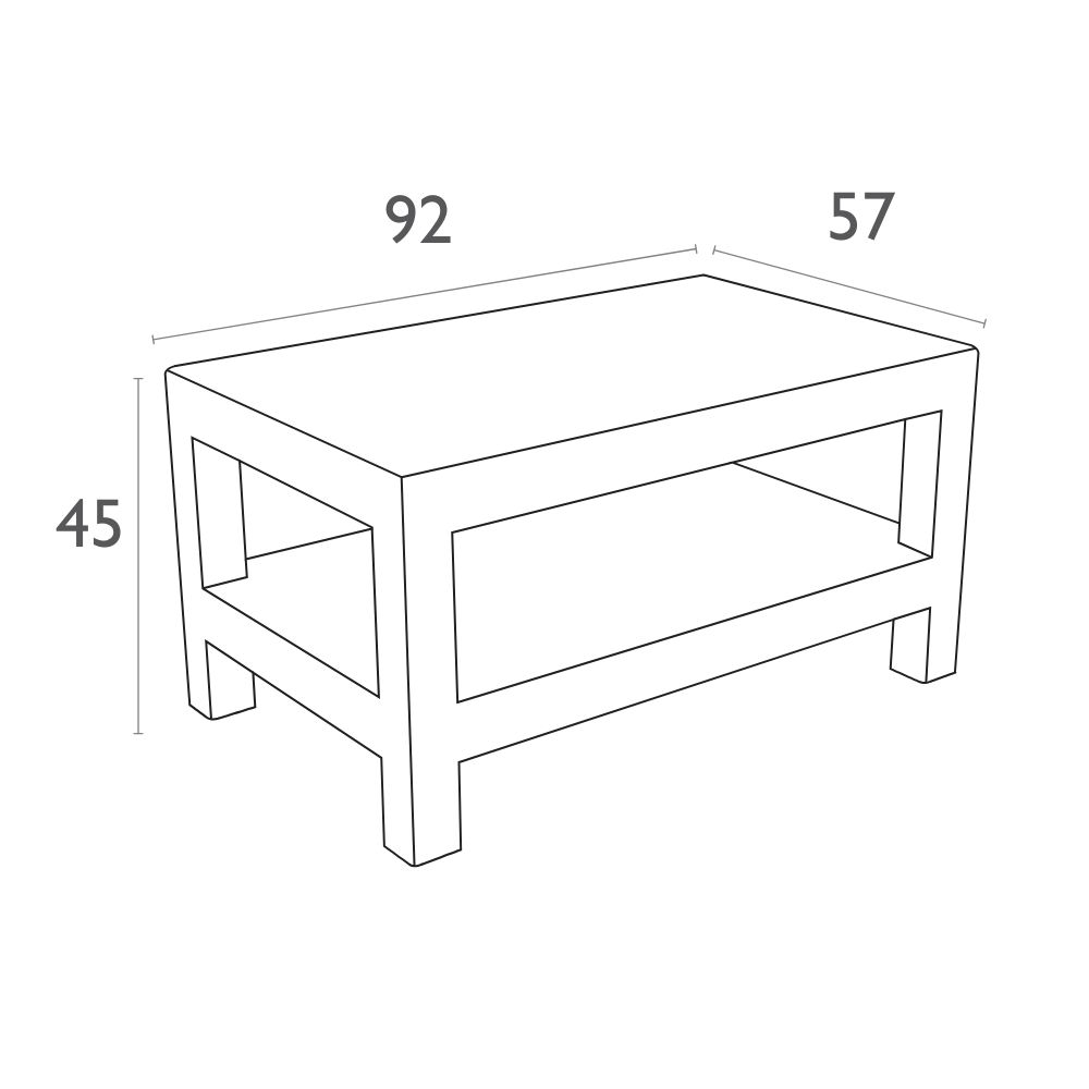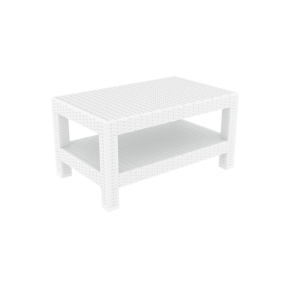 La mesa de salón Monaco está hecha de resina duradera y resistente a la intemperie. Su estructura no metálica no se deshilacha, oxida ni deteriora. Cuenta con protección UV, lo que garantiza que los colores no se destiñan. Es desmontable. Para uso en interiores y exteriores.