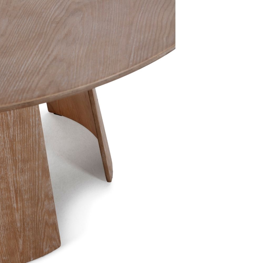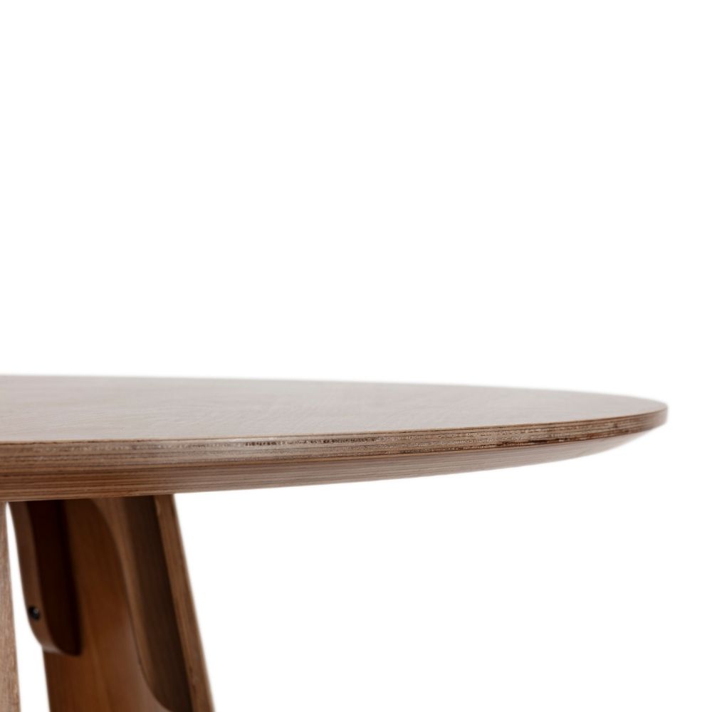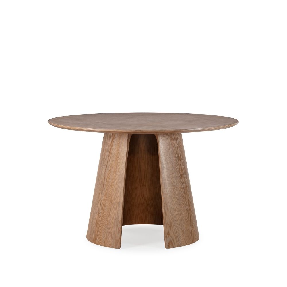 La mesa redonda Zuri de madera contrachapada combina diseño contemporáneo y naturalidad en una pieza única. Su tablero de 120 cm de diámetro ofrece el espacio perfecto para disfrutar de comidas, reuniones o momentos de conversación, fomentando la cercanía y el equilibrio visual propio de las formas circulares.