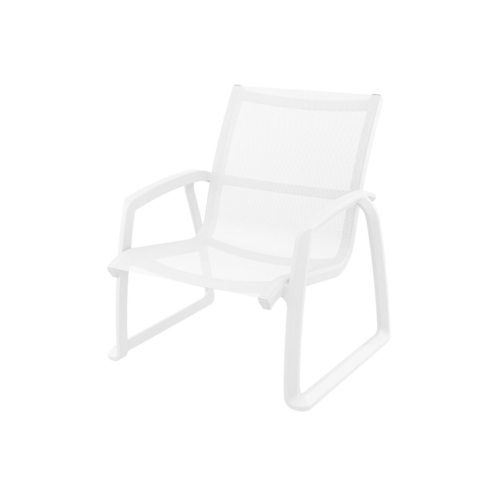 Sillón apilable Pacific Armchair con tejido Batyline® de Serge Ferrari. Una pieza de diseño sofisticado, resistencia extraordinaria y confort supremo. Su estructura en resina de alta calidad reforzada con fibra de vidrio es impermeable, inalterable y protegida contra rayos UV, perfecta para soportar sol intenso y lluvias. El tejido técnico Batyline® ofrece elegancia, transpirabilidad y secado ultrarrápido, manteniendo su belleza intacta. Incluye reposabrazos y es apilable. Colores: negro, negro-gris oscuro, taupe y blanco. Medidas: Altura total: 85 cm, Anchura total: 76 cm, Profundidad máxima: 80 cm, Altura asiento: 39 cm.