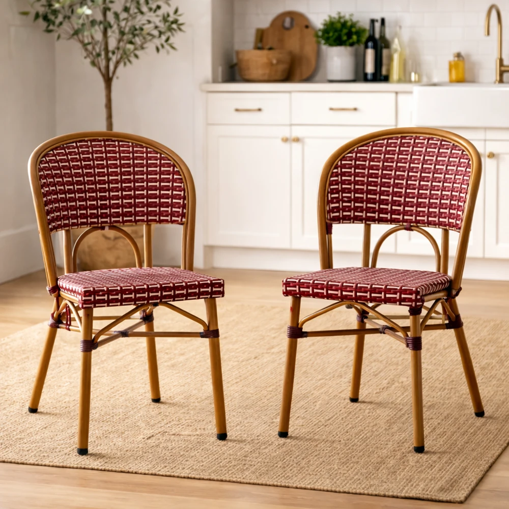 Silla inspirada en el icónico diseño de café parisino, pensada para proyectos de hostelería que buscan un equilibrio entre estética, confort y durabilidad. Su estructura está fabricada en aluminio con acabado pintado efecto roble, ofreciendo la apariencia cálida de la madera con las ventajas técnicas del aluminio: ligereza, resistencia y fácil mantenimiento.