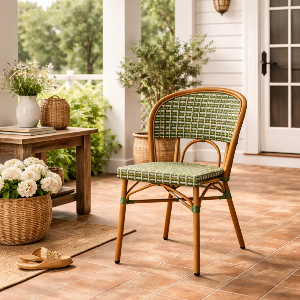 Gracias a sus materiales y construcción, esta silla es apta tanto para interior como exterior, siendo una opción perfecta para terrazas, restaurantes, cafeterías y hoteles que buscan un look cuidado sin renunciar a la practicidad.