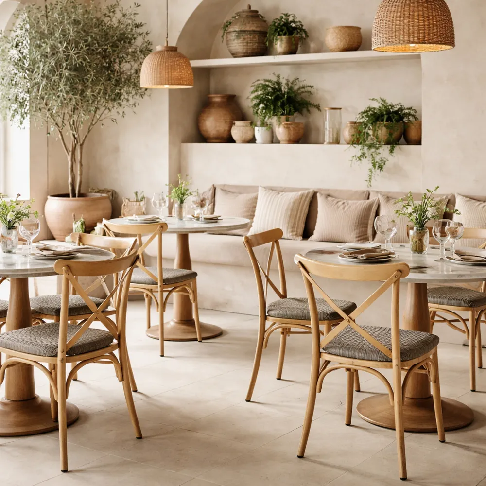 Su respaldo en aspa le da un toque clásico reinterpretado, fácil de integrar en diferentes estilos de proyecto. Una silla versátil, resistente y con buena presencia en sala.