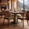 - Respaldo y brazos curvados envolventes: máximo confort ergonómico y sensación de protección en comidas largas o reuniones.