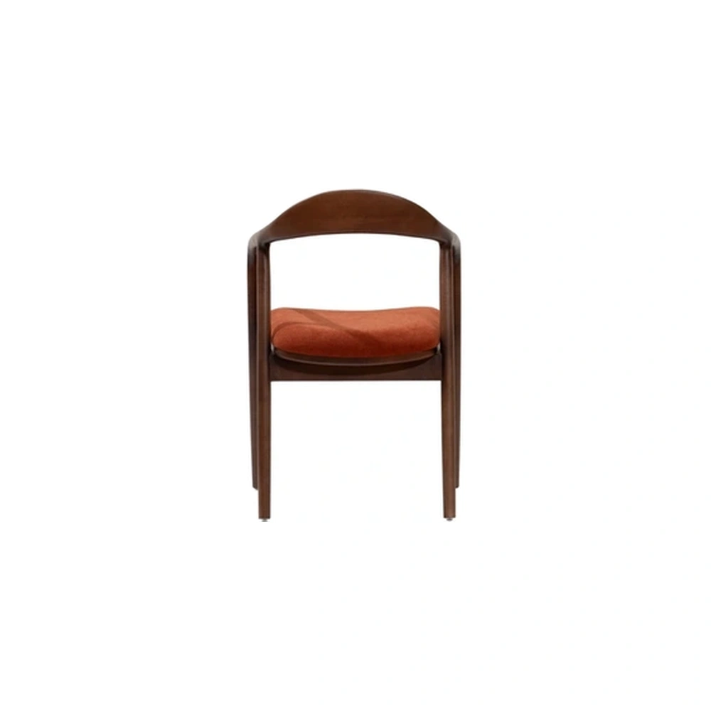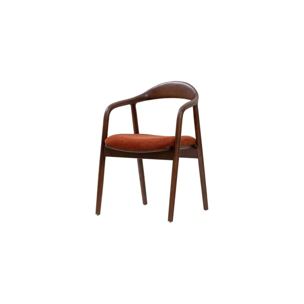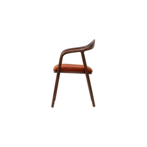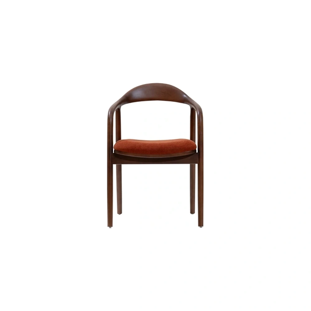 Silla con brazos tapizada en terracota es una de las piezas más deseadas para proyectos Horeca en 2026. Su diseño curvo envolvente crea una sensación de confort superior, mientras que el tapizado en terracota/naranja óxido (un color cálido, energético y sofisticado) se combina con madera natural para transmitir autenticidad, calidez y elegancia orgánica sin esfuerzo.