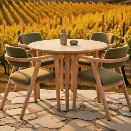 - Respaldo y brazos curvados envolventes: máximo confort ergonómico y sensación de abrazo en comidas largas o reuniones.