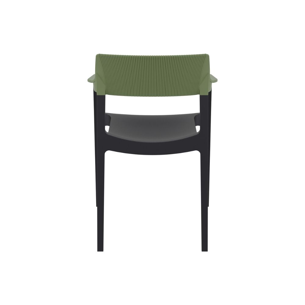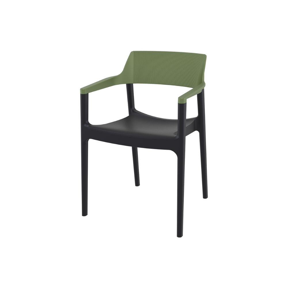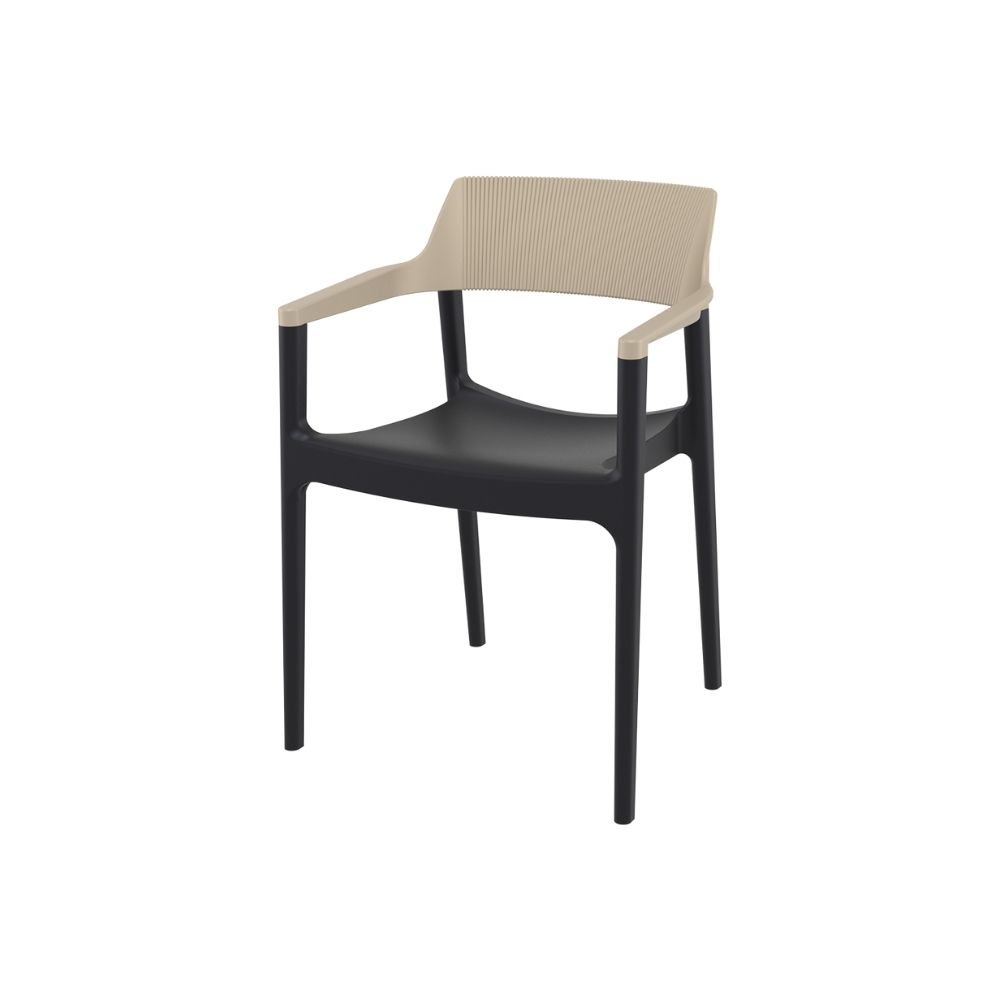 La silla con brazos Tulum es apilable y se fabrica mediante una sola inyección de polipropileno reforzado con fibra de vidrio, obtenido mediante tecnología de moldeo por aire de última generación, con tonos neutros. Para uso en interiores y exteriores. Apilable hasta 16 unidades.