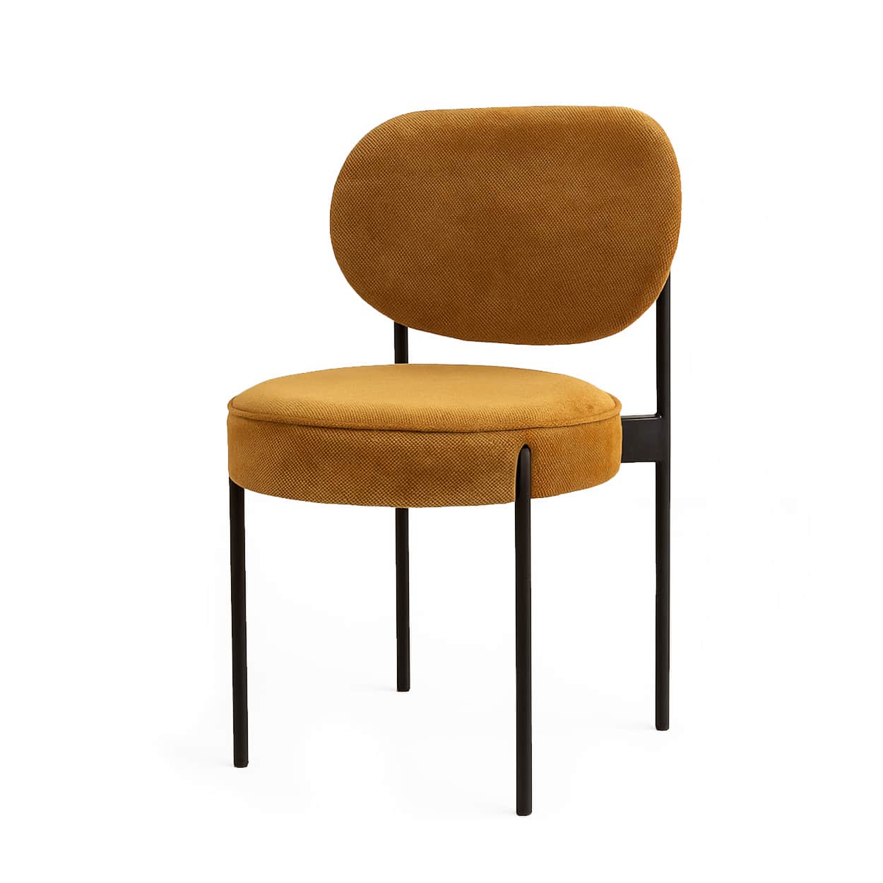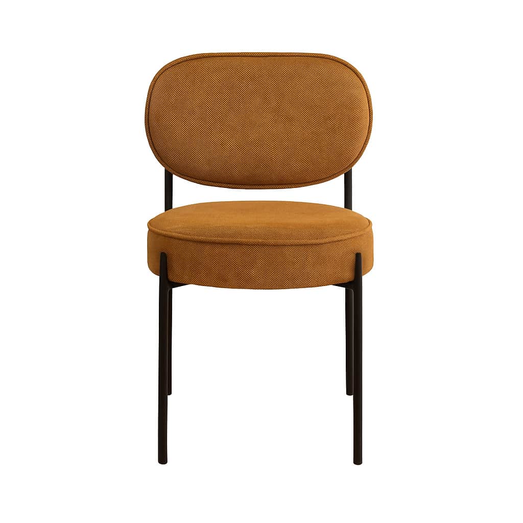 Silla tapizada con respaldo y asiento tapizados antimanchas de alta calidad. Estructura de metal pintado color negro texturizado al horno. Carcasa interior de madera curvada de haya en respaldo, y asiento en MDF. Se sirve montada en una caja. Garantía de nuestros productos 2 años.