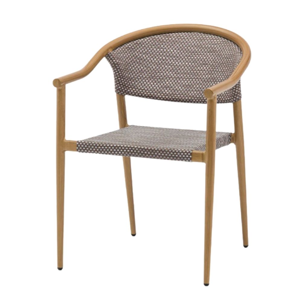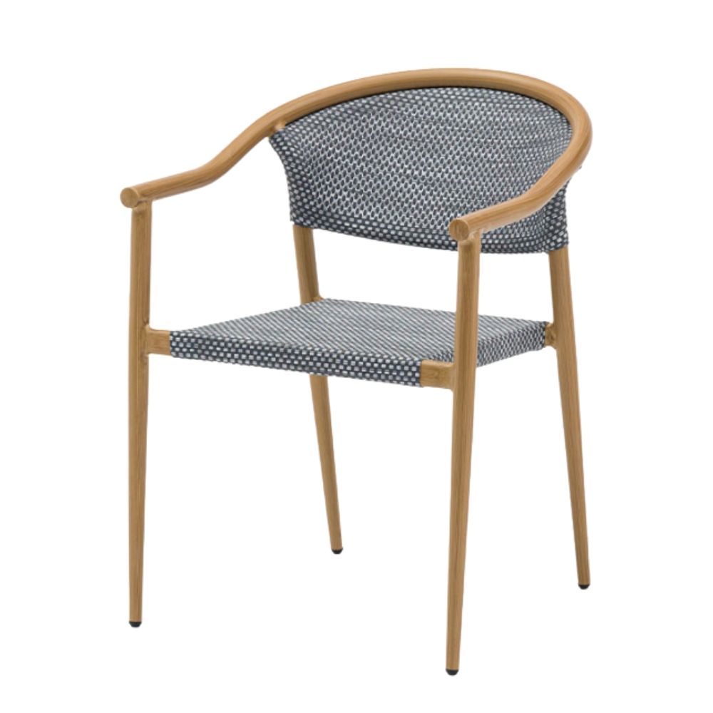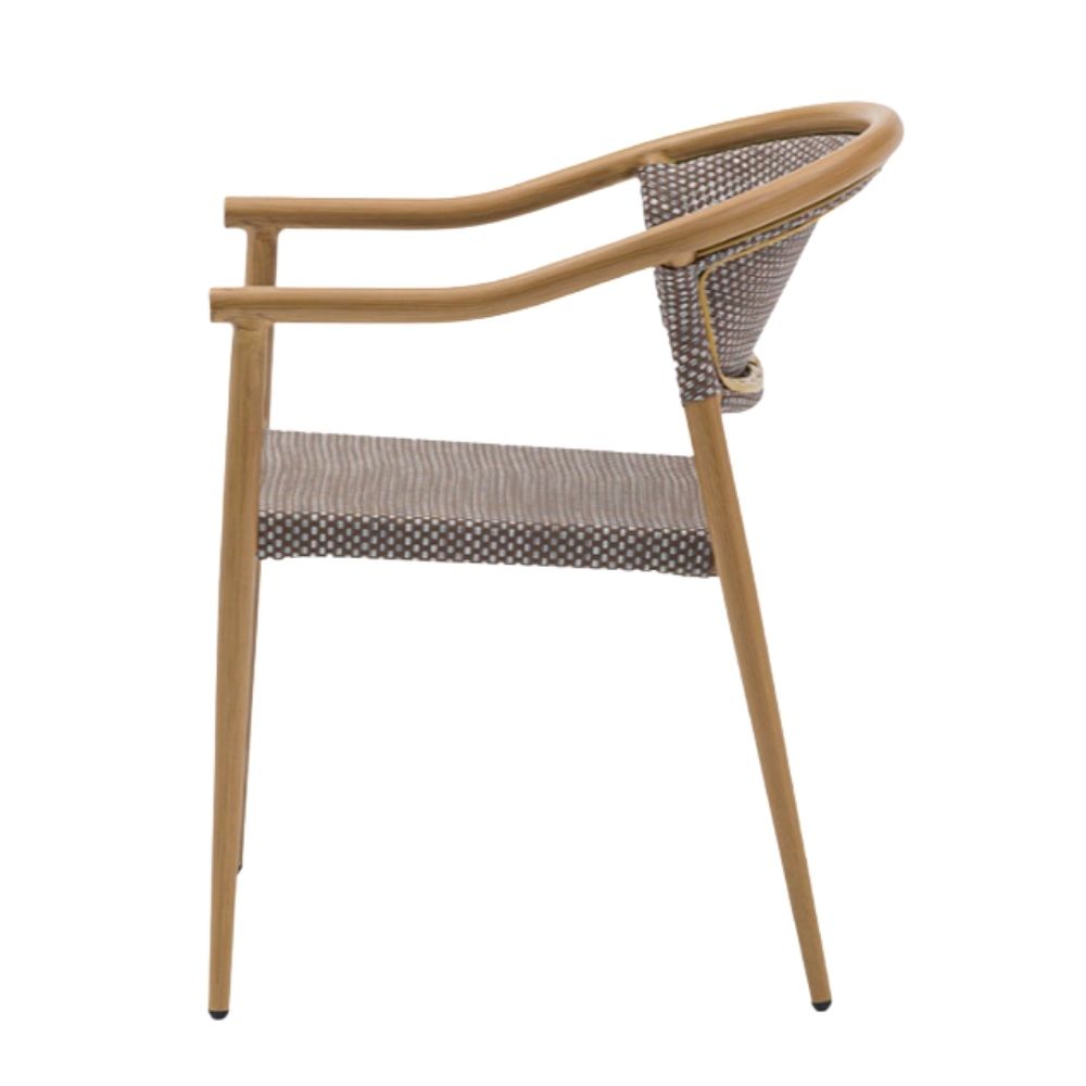 Sillón apilable Manhattan de aluminio imitación deco bambú con asiento y respaldo textilene. Sillón de jardín e interior al mejor precio.