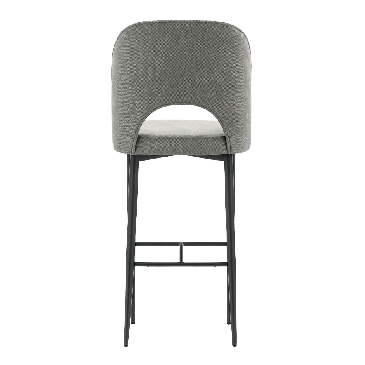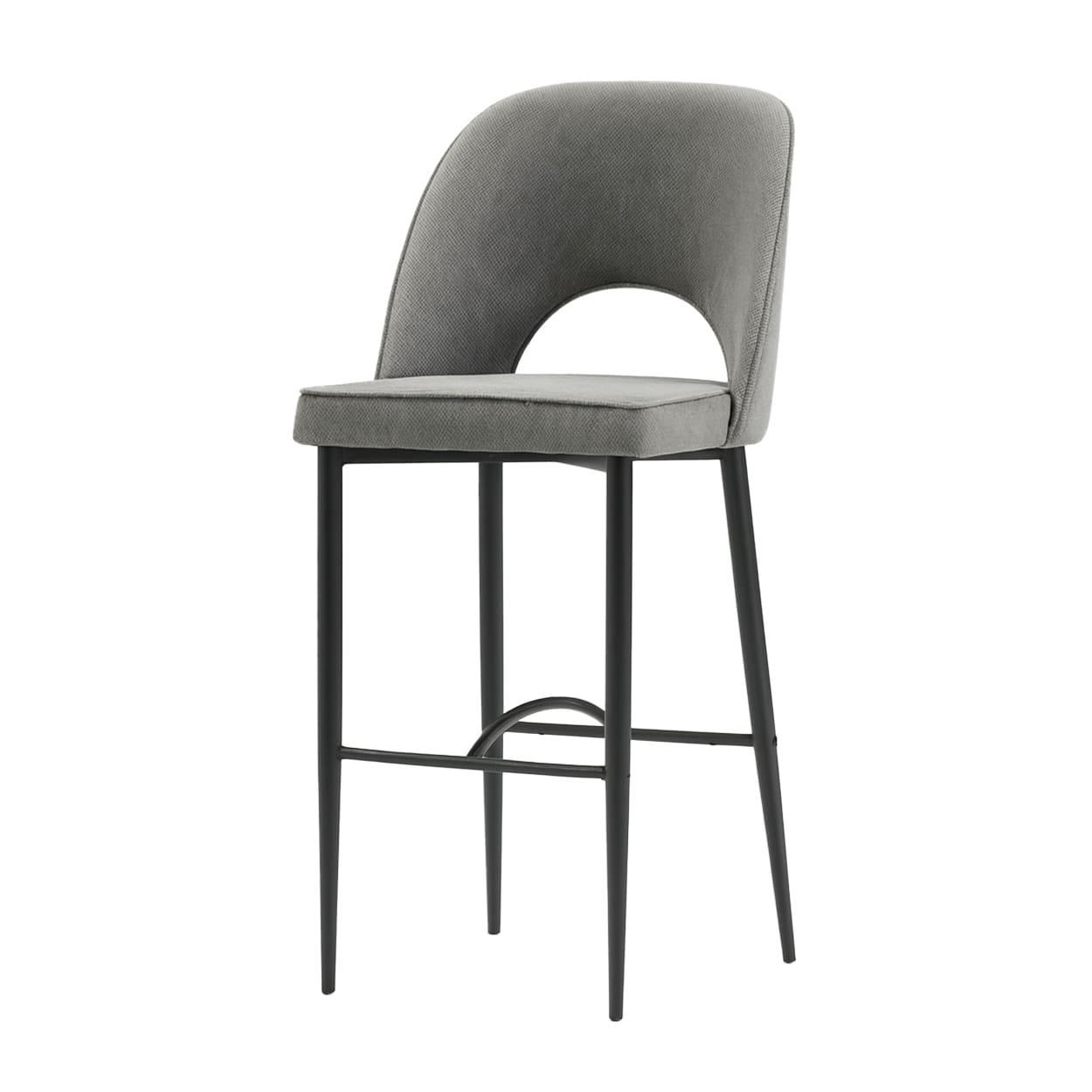 Taburete con respaldo y asiento tapizados antimanchas de alta calidad. Estructura de metal pintado color negro texturizado al horno. Carcasa interior de madera curvada de haya en respaldo, y asiento en MDF. Garantía de nuestros productos 3 años.