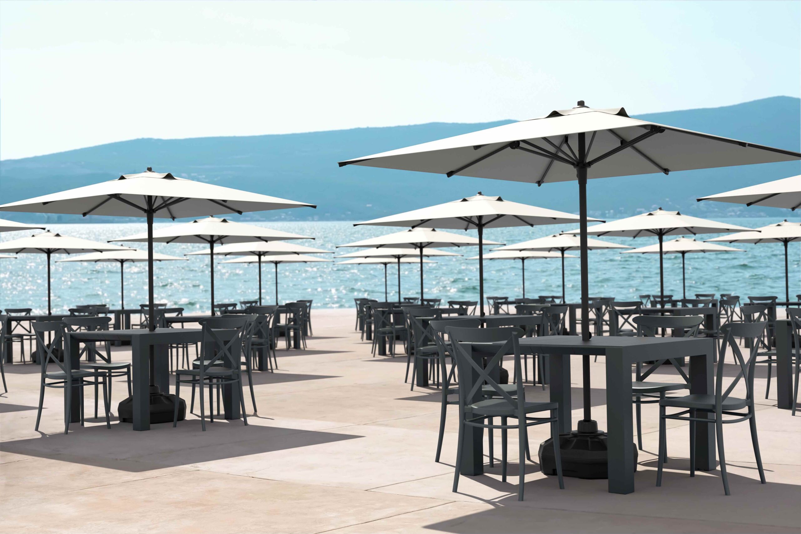 Mesa extensible resistente y elegante para interior o exterior, con protección UV y apertura sencilla para adaptarse a cualquier ocasión.