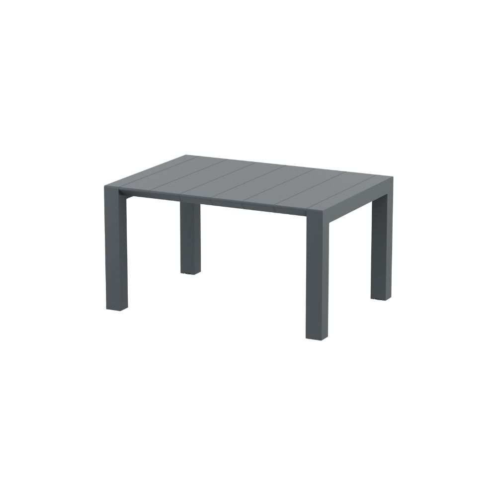 Mesa extensible desde 100 a 140 cm, fabricada en polipropileno reforzado con fibra de vidrio, que combina resistencia y ligereza. Su práctico sistema de extensión permite adaptarla fácilmente a dos medidas, ofreciendo versatilidad según tus necesidades. Gracias a su mecanismo inteligente, el ajuste de tamaño es rápido y sin esfuerzo. Diseñada para uso tanto en interiores como en exteriores, cuenta con protección UV que preserva su color y acabado frente al sol. Colores disponibles: negro, gris oscuro, taupe y blanco. Medidas: Largo sin extender: 100 cm. Largo extendido total: 140 cm. Ancho total: 100 cm. Altura total: 75 cm.